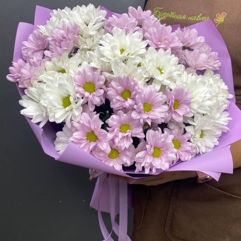 Хризантема кустовая – 9 шт.Лента атласная – 1 шт.